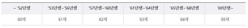 국민연금을 수령할 수 있는 나이는 52년생까지는 만 60세, 53년생부터 56년생까지는 만 61세, 57년생부터 60년생 까지는 만 62세, 61년생부터 64년생까지는 만 63세, 65년생부터 68년생까지는 만 64세, 그리고 69년생이후 출생자는 만 65세부터 연금액을 지급받을 수 있습니다.